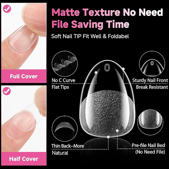 - ❤️【Almond Nail Tips with No Trace】The clear short almond nail tips are gelly soft tips and will make no trace even bend, you can more easily press, trim, paint flat false nails to make your dream nails shape.