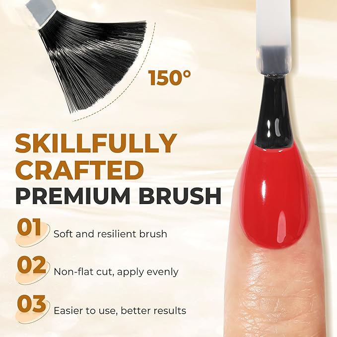 - EASY TO APPLY-The built-in-brush featuring a 150-degree wide-angle design, which ensures better coverage when applying base coat and top coat. Whether you're a beginner or a professional, it's easy to handle.