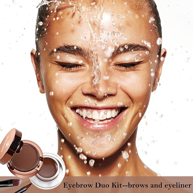 Cream Eyebrow Duo Kit, Brow Powder and Eyeliner Gel, Eye Brow Pomade Waterproof Highly Pigmented, Filler Thicker Brows, with Dual Head Brush