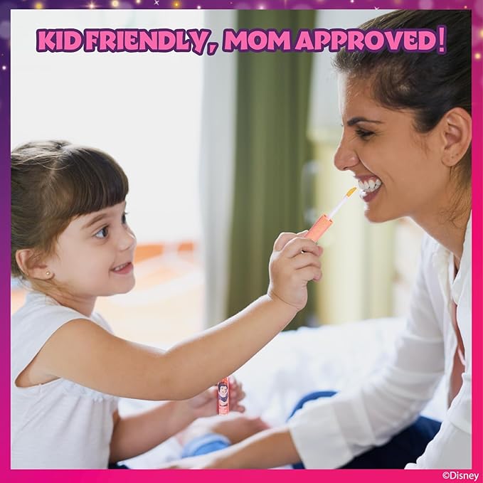 - FAVORITE CHARACTERS - These glosses are decorated with her favorite Disney Princesses such as Cinderella, Ariel, Moana, Tiana, and more. Kids will have fun showing their friends this sparkly gloss.