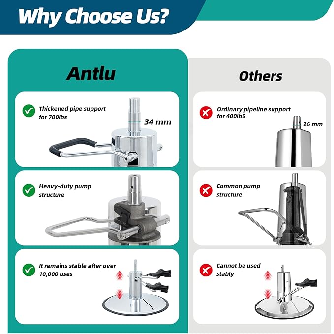 - Heavy-duty and Reliable: Designed with an oversized hydraulic pump, rather than the common small pumps, this hair styling chair can handle over 10,000 height adjustments while maintaining stability. Additionally, the reinforced metal base allows for a weight capacity of up to 700 pounds.