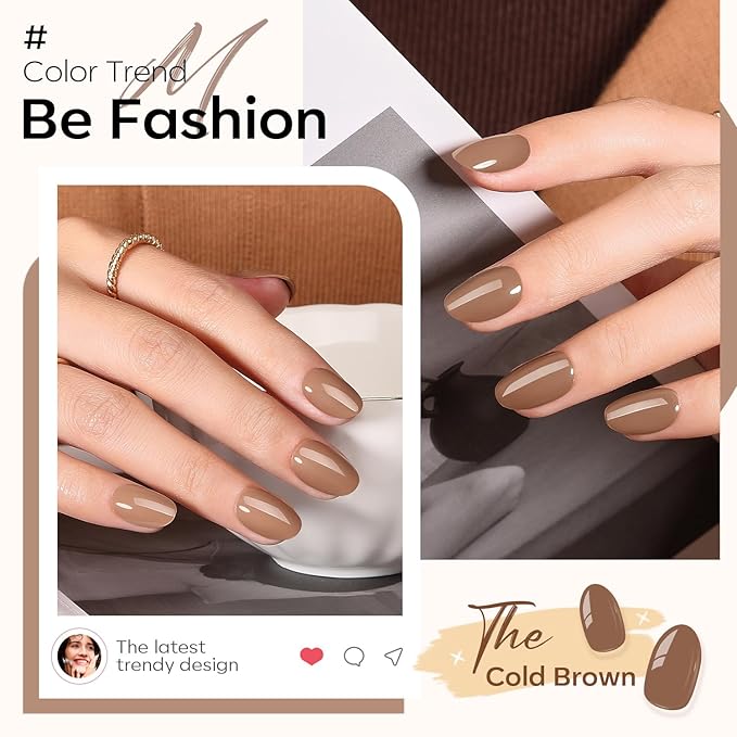modelones Brown Press on Nails Short, Christmas Oval Fake Nails Kit Press Ons with Nail Glue, Adhesive Tabs, Nail File, Prep Pad, Manicure Stick, 32Pcs 16 Sizes