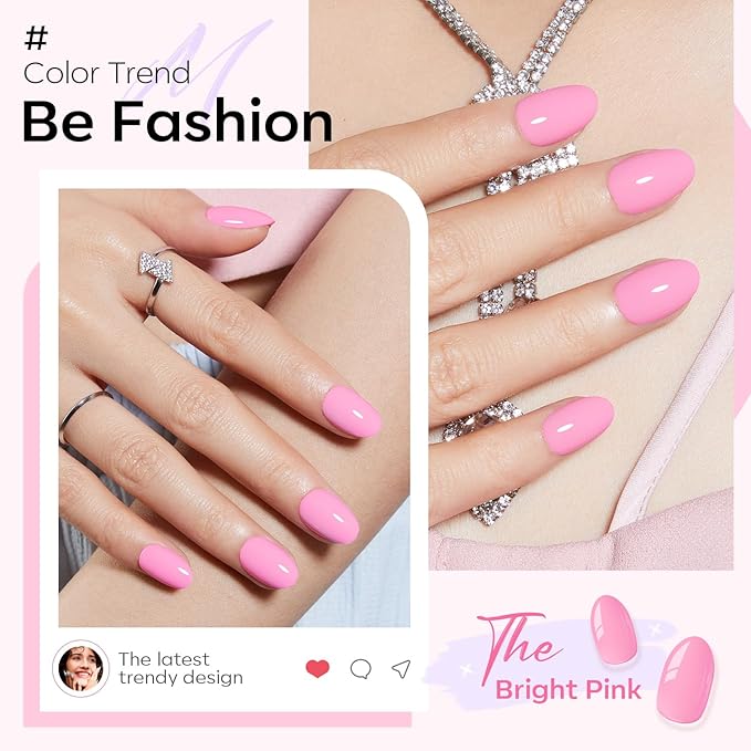 modelones Short Press on Nails, Oval Fake Nails Kit Press Ons with Nail Glue, Adhesive Tabs, Nail File, Prep Pad, Manicure Stick, Pink, 32Pcs 16 Sizes, Christmas