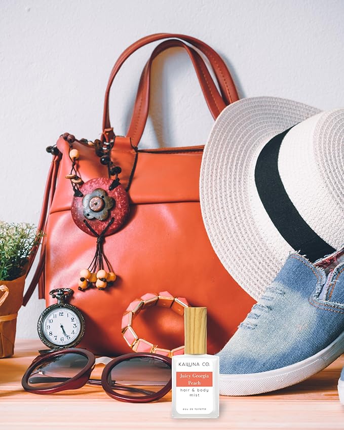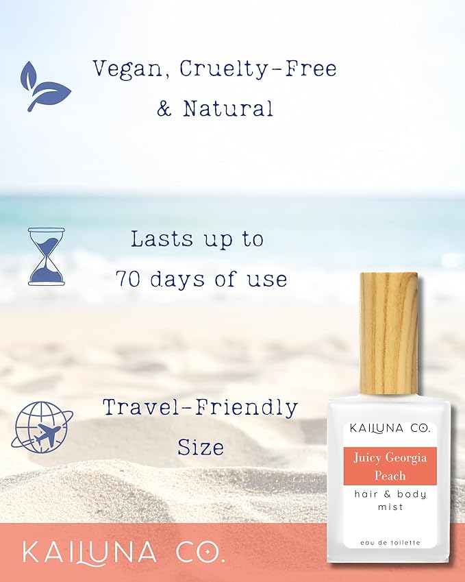 Juicy Georgia Peach Natural Hair & Body Mist Spray, Pure Essential and Fragrance Oils, Alcohol-Free, Handmade in California, 0.5Fl Oz
