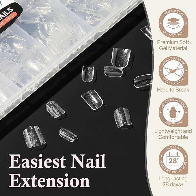 - ❤️ Foldable Soft Gel Tips: Crafted from gelly soft gel material, these fake nails leave no trace even when bent. Their bright clarity allows for easy pressing, trimming, and painting, helping you create your ideal nail shape effortlessly. Perfect for a true DIY manicure.
