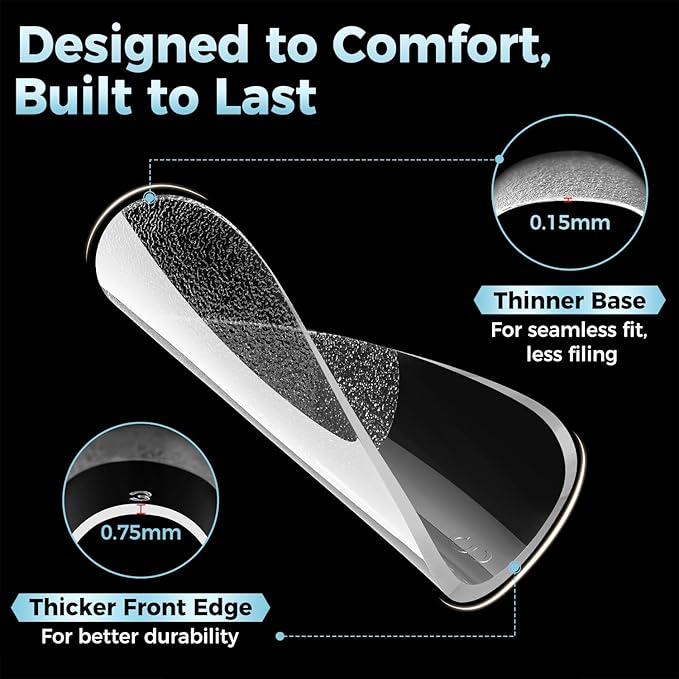 - ❤️ Easy to Use: Luckyfairy clear square tips front end is thick and hard to break, and the back end is thin and has a more shallow curve to give you a natural wearing feel without feeling uncomfortable "tightness". Also, Pre-shape tips do not need to be filed and save much time.