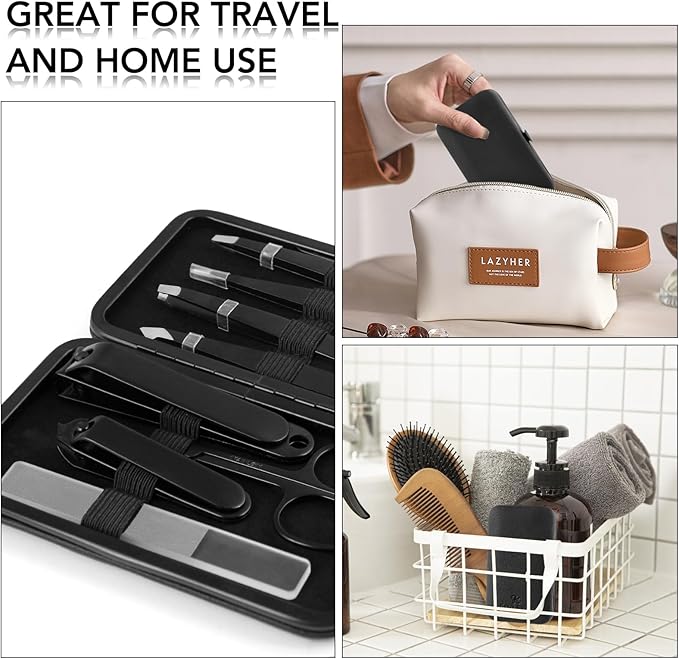 - [VALUE TWEEZER MANICURE SET] Equipped with 4 precision tweezers with different tips and angles. Use with our eyebrow scissor for all your eyebrow grooming habits. It also comes with 2 anti-slip pattern nail clippers and a nail file for manicuring your hands.