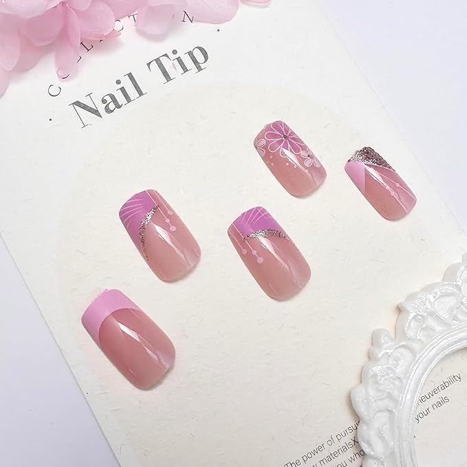 - Safe and Sturdy Design: Unique micro-thickening design to prevent square fake nails tips from cracking, pink acrylic nails. Manual brush gel treatment on the nail surface, pattern printing is clear and not easy to fade, providing you with a safe and comfortable nail experience.