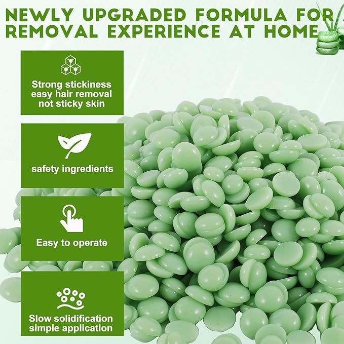 PURPLESKY Wax, 1lb Green Hard Wax Beads for Coarse Hair Removal, Waxing Beads for Bikini, Leg, Back, Face, Brazilian Wax for Women & Girls, Biodegradable, All Skin Types, Unisex, Whole Body