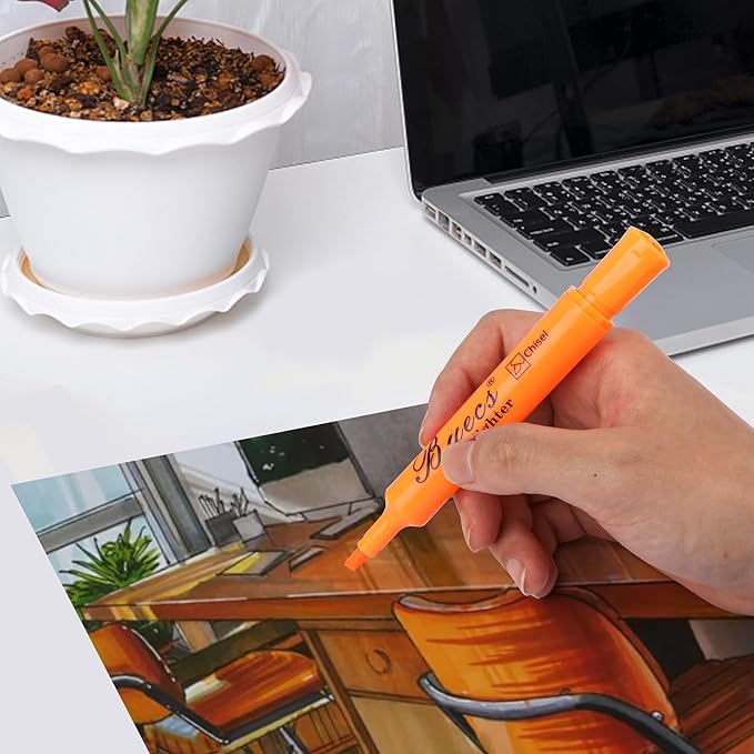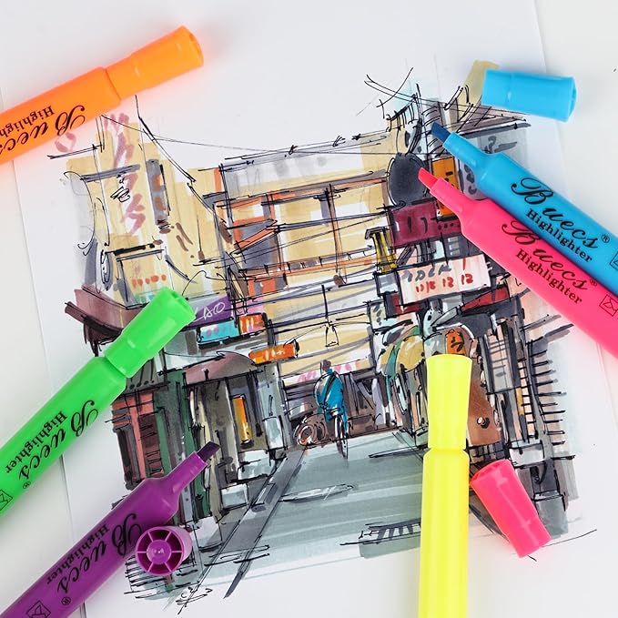 - 96 count highlighters bulk contains 6 bright fluorescent colors, including yellow, blue, pink, purple, green, and orange.Ink for highlighting text, underlining information, including textbooks, faxes, copies, newspapers and assorted planners, make your text easy to read.
