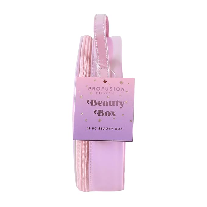 Profusion Cosmetics Frosted Snow Sparkle 19 PC Beauty Box, 1Pc Gorgeous Travel Bag, Eyeliner Pencil, Lip Gloss, Face Mist, 2Pc Lip Mask, 3 Pc Makeup Brushes and 3 Shade Face Palette, 8 Shade Palette