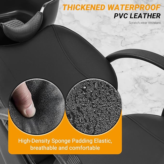 - ✔HIGH QUALITY MATERIAL: ABS Shampoo Bowl+Solid wood frame + High-elastic sponge + Enhanced PVC leather+ UPC standard sprinklers.