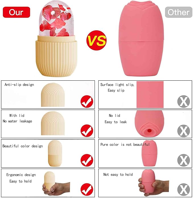 - ❄️ HIGH-QUALITY: This ice roller for face is made of high-quality silicone material, which is repeatable and durable. Small and light design, ergonomic hand design is easy to grasp, ice roller head can slide on the skin,It is also easy to carry.