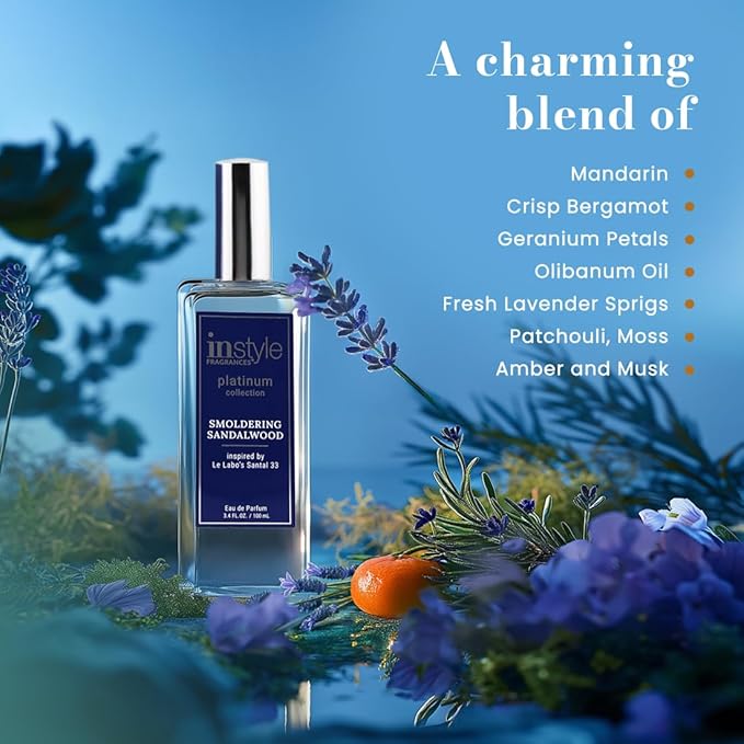 Instyle Fragrances, Platinum Collection, Smoldering Sandalwood, Inspired by Le Labo’s Santal 33, Unisex Eau de Parfum, CLEAN, Vegan, Paraben-Free, Never Tested on Animals, 3.4 Fluid Ounces