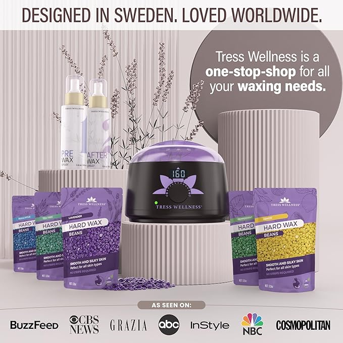 Tress Wellness Waxing Kit for Sensitive Skin – Safe for Face & Skin, Prep & Aftercare Spray, Easy to Use – At-Home Kit for Face, Bikini, Brazilian & Full Body - Digital Display, Dusty Chocolate