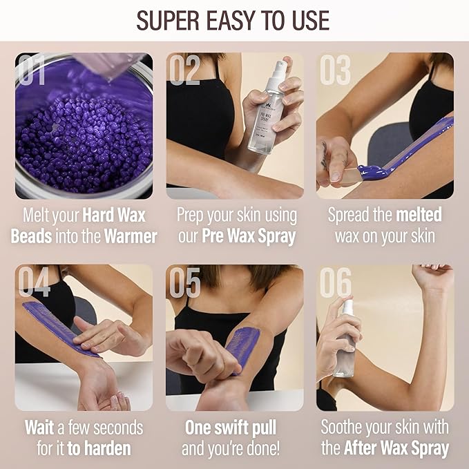 - ALL YOU NEED FOR WAXING! Our complete wax kit includes a Digital Wax Warmer with temperature control | 5 Scented Hard Wax Bead Bags | 20 Large & 10 Small Waxing Sticks | 1 Pre-Wax Spray & 1 After-Wax Spray | 5 Protective Collars | & a "Wax Like a Pro" Guide. Basically, our all-in-one wax warmer kit includes everything you’d need for perfect at-home waxing.