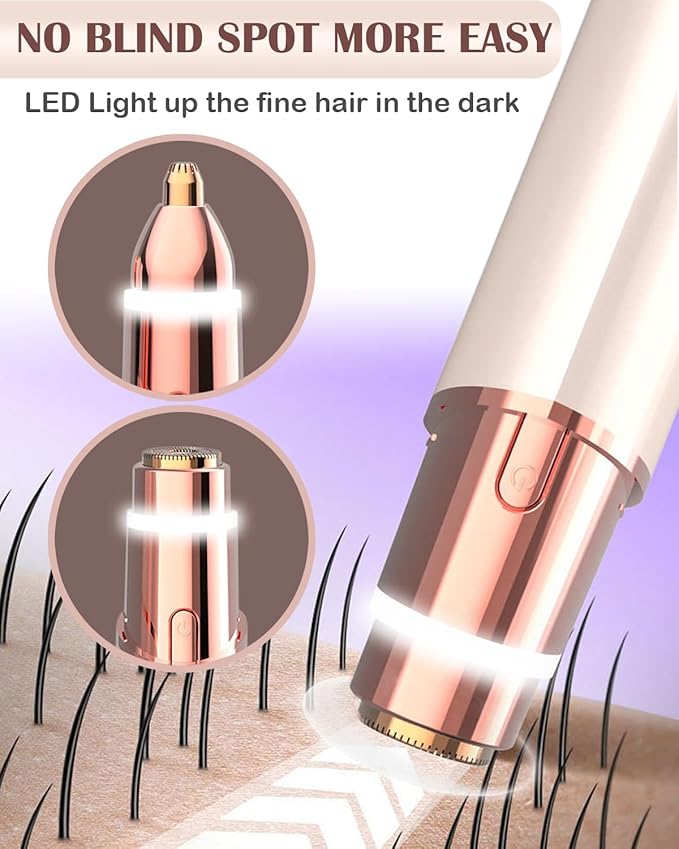 - [Built-in LED Light] The LED light can see the peach fuzz easily even in the dark light, Illuminate the area for precise hair removing, removing fine hair from face and body effectively and safely