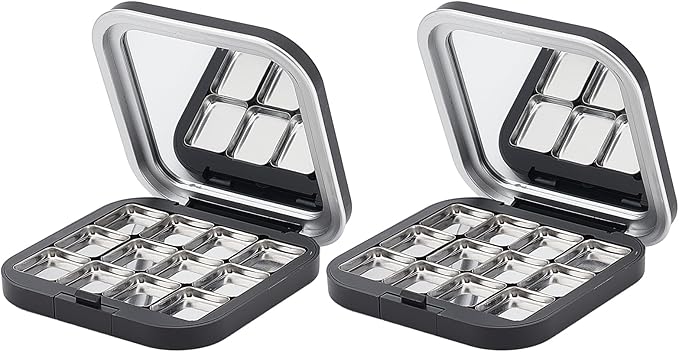 - PACKAGE & SIZE: The package includes 2 pieces of empty eyeshadow palettes, providing sufficient quantity to meet your various needs or share with friends. Each eyeshadow box measures about 7.5x7.5x1.4cm.