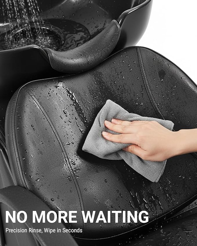 - Spill-Proof Deep Shampoo Bowl (8.85" Deep): Extra-deep 8.85-inch basin effortlessly accommodates extra-long/thick hair (perfect for all users, especially those with long locks) while preventing water splashes – keeps floors dry. Soft detachable neck brace for comfort & easy cleaning