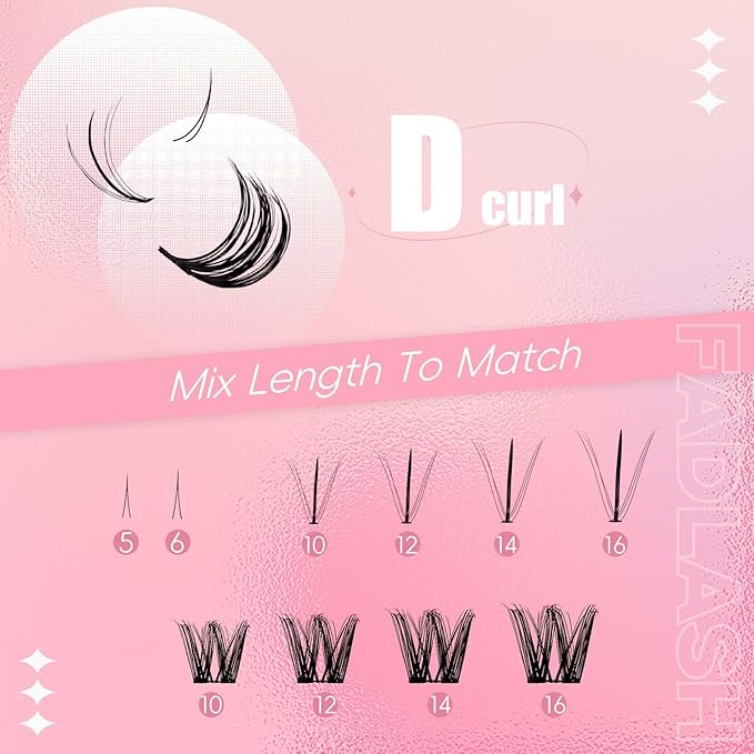- Multi-type Lashes: FADLASH Multi-Type DIY Lash Trash eyelash extension kit, which includes Bottom Lashes, Volume Fans, 7D Spike Fan, bond and seal, Lash Remover, and tweezer. Everything you need is here. Using this eyelash extension kit will be more convenient and save time. Give it a try!