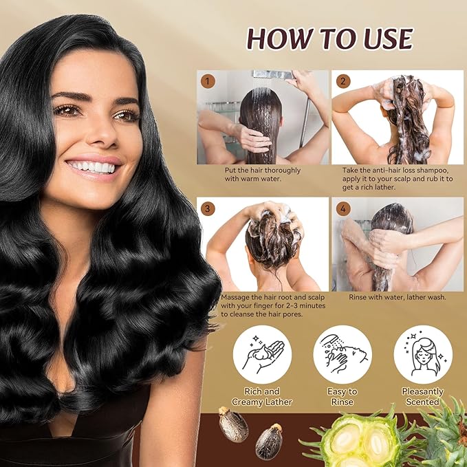 - IMPROVE HAIR LOSS - The castor oil ingredient contained in the product effectively nourishes the scalp and provides sufficient nutrients to the hair roots, which in turn helps to minimize the problem of hair fall and makes the hair thicker.