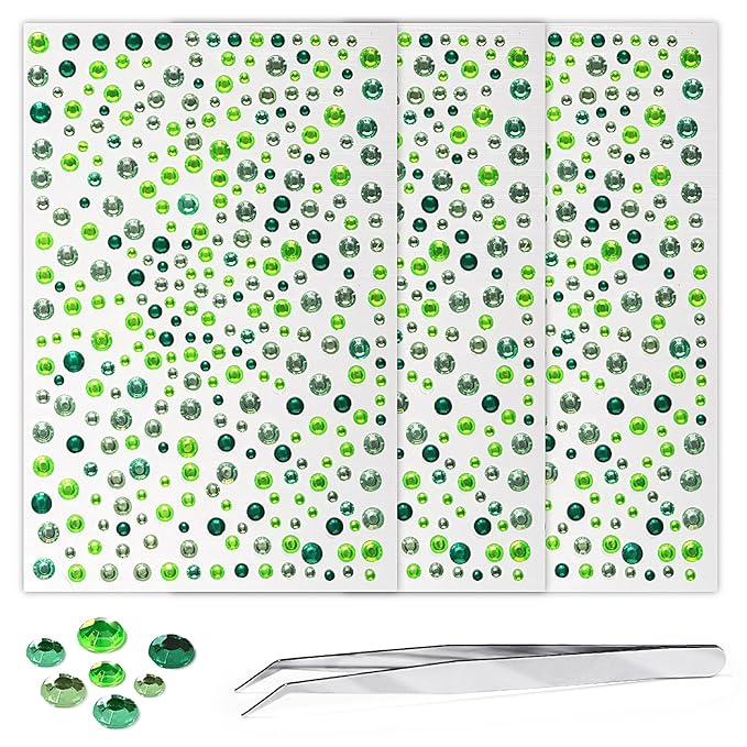 975Pcs Face Gems Hair Gems, Self-Adhesive Face Jewels Eye Jewels Rhinestones 3/4/5/6 mm DIY Face Gems Stick on, Hair Body Rhinestones Gems Crystals Pearls for Face Makeup, Crafts (gem_mixedgreen)