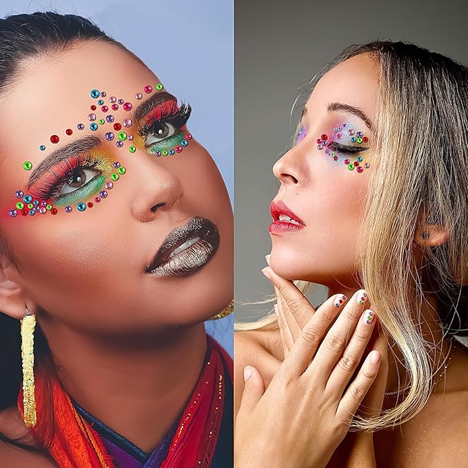 - RHINESTONES FOR FACE: Face jewels stick on with medical-grade hypoallergenic adhesive, perfect for sticking on your eyes, and face. Don’t prepare additional glue and save your time and energy. These self-adhesive face rhinestones are available in 3mm, 4mm, 5mm, and 6mm sizes, and the various sizes are more convenient for you to use in makeup and DIY decorations.