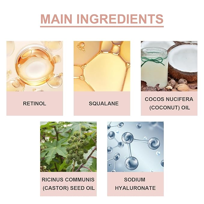 - 【Main Active Ingredients】Retinol is the main ingredient in this eye balm, squalane lightens dark circles, reduces fine lines, firms the skin around the eyes, moisturizes and nourishes, coconut oil and castor seed oil improves the elasticity of the skin, targeting the signs of aging for a more youthful appearance.