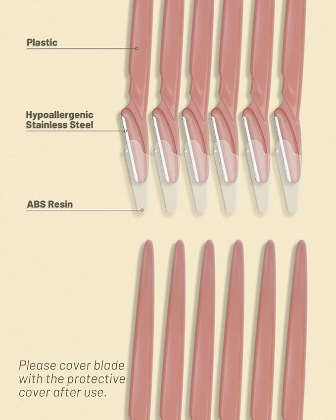 - MATERIAL: eyebrow razor for women is made of good quality plastic, sharp stainless-steel blade and ABS resin