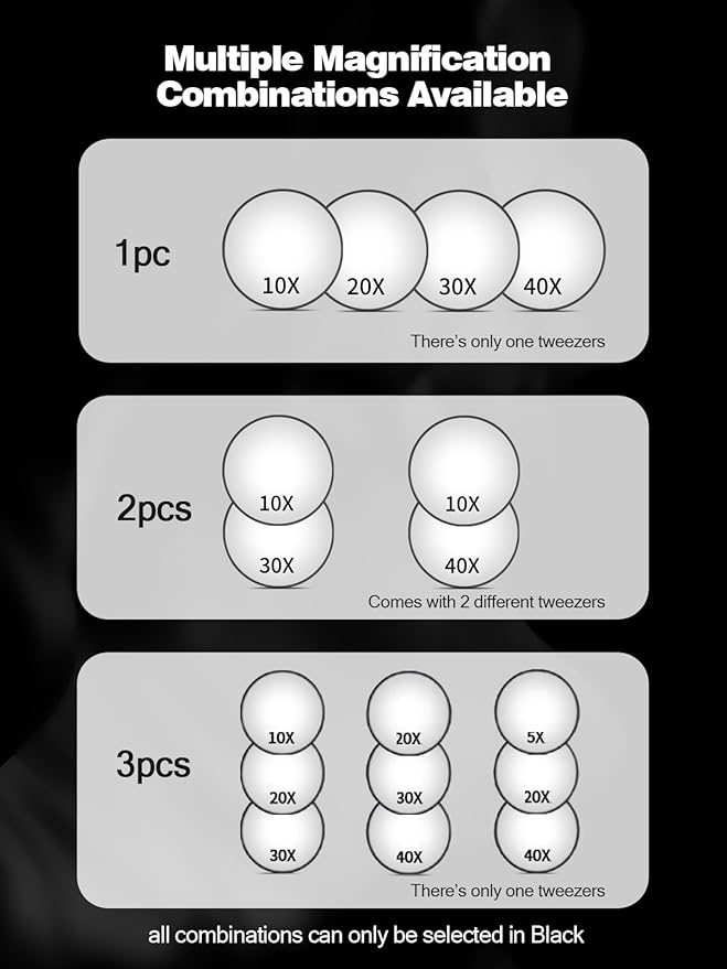 20X/30X/40X Magnifying Mirror with Suction Cups and Tweezers Set, 3.5 inches Travel Magnified Makeup Mirror, Black, 3PCS