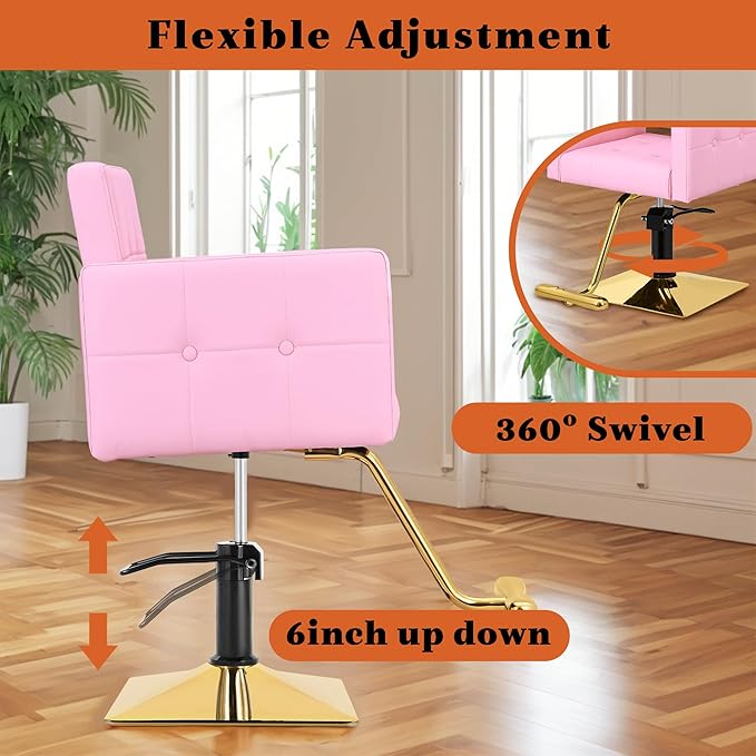 - DURABLE AND STURDY: This hairdresser chair adopts a square gold-plated steel frame design, ensuring strong support and stability. The load-bearing capacity is as high as 330lbs, which can meet the needs of most people.