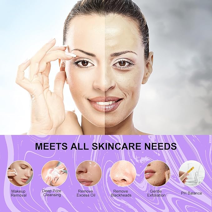 Facial Cleansing Brush, Silicone Face Scrubber Exfoliator for Men & Women, Electric Facial Brush Waterproof, with 3 Speeds Adjustable for Deep Cleaning, Removing Blackhead, Face Massaging (Purple)