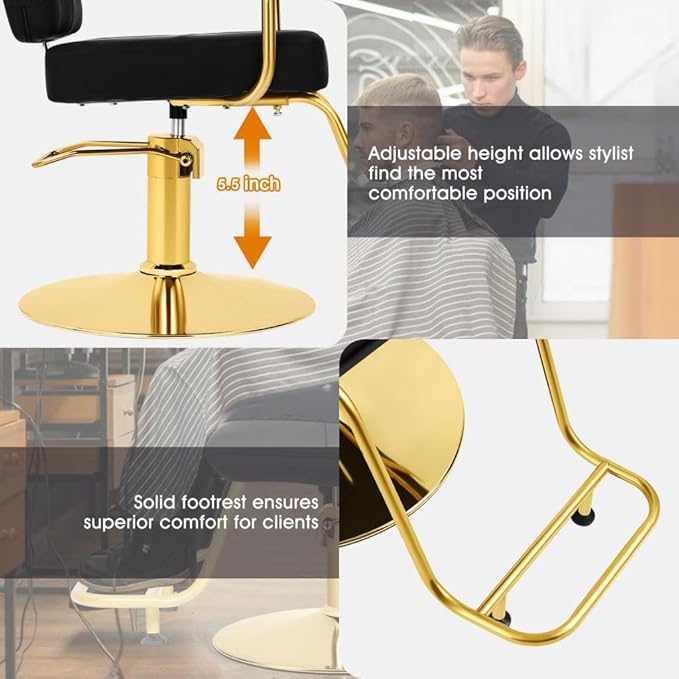 - 【Adjustable Hair Chair】- The stylist chair rotates 360 degrees and features a heavy-duty hydraulic pump for easy height adjustment up to 5.5 inches. With a maximum weight capacity of 330 lbs, it suits most women and man effortlessly.