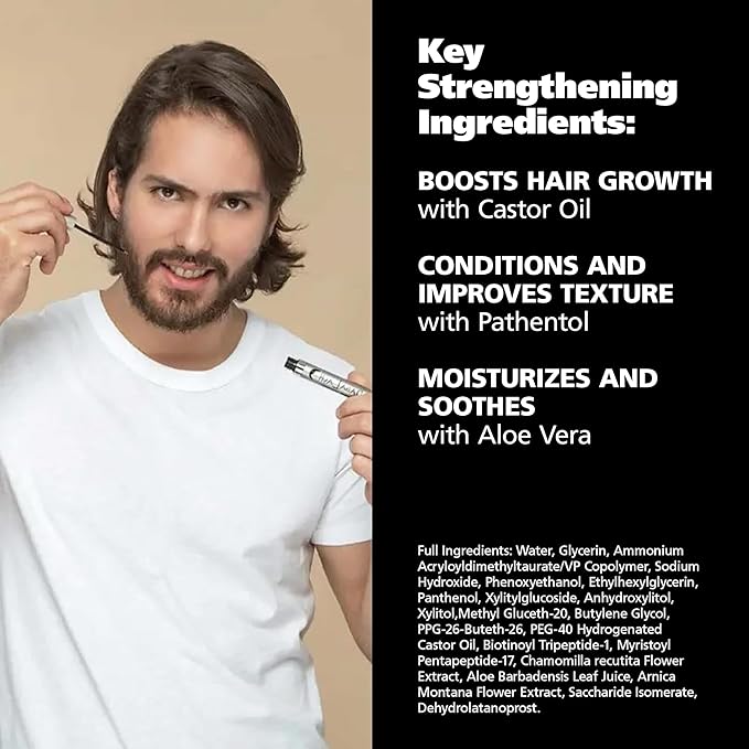 - Product Benefits : Strengthens and promotes growth of facial hair, eyelashes, and eyebrows for a fuller, thicker appearance Strengthens and promotes growth of facial hair, eyelashes, and eyebrows for a fuller, thicker appearance