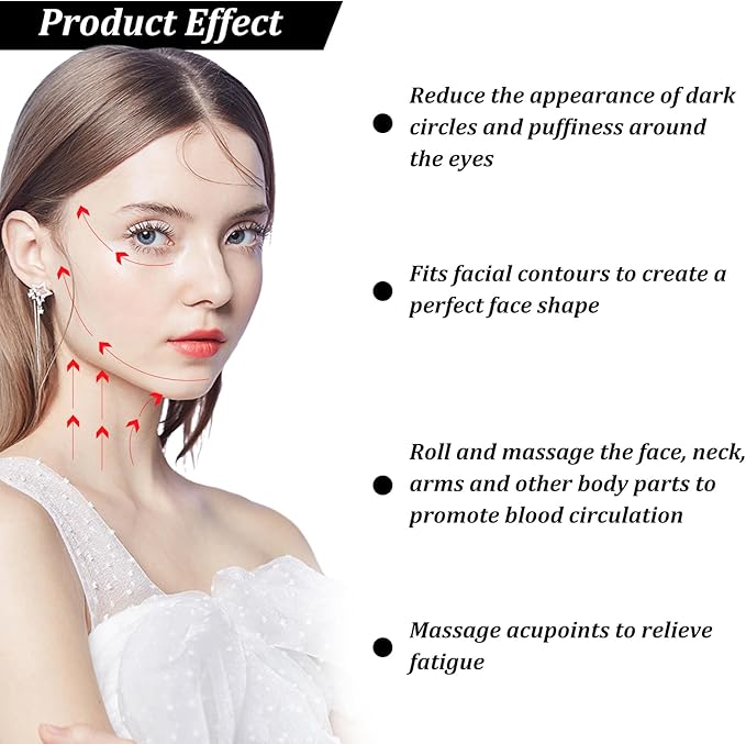 - 【Keep Young Eyes】-This facial roller is designed to help reduce the appearance of dark circles and puffiness around the eyes. When used daily, this handheld facial roller can help relax muscles, reduce wrinkles, and eliminate dark circles, resulting in a more youthful appearance