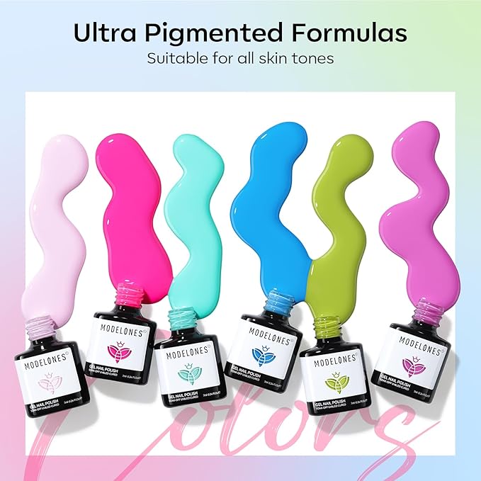 - [ Bright Rainbow Neon Gel Polish Kit ]: Get carefully selected 6Pcs x 7ml/0.24oz blue mint green nude pink Gel Nail Polish from Modelones. Take it home and use this colorful gel polish kit to tinge your wonderful Spring Summer days