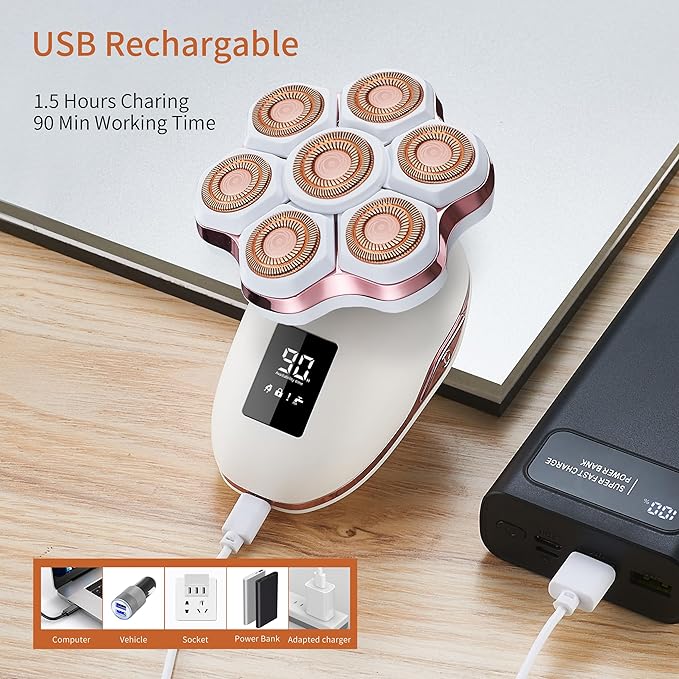 - 【Powerful & Convenient】Powered lithium battery womens razors provide long-lasting performance for up to 90 min with a 1.5 Hr USB charging time. Long press 3 seconds of pubic hair trimmer women to trigger travel lock avoiding accidental power consumption. LED display shows the remaining working time.