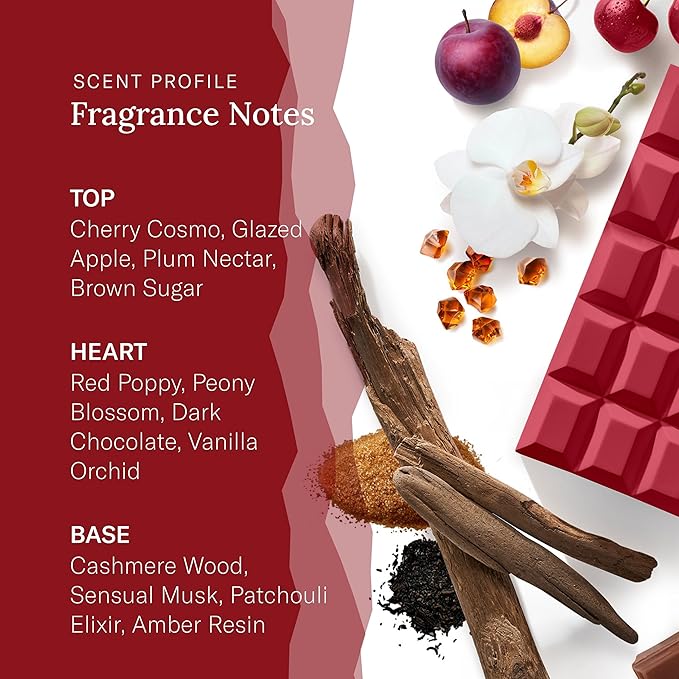 - Cherry Baby Scent Notes: Features an indulgent aroma of cherries and chocolate that envelops you, swirling in a flirty mist of red poppy and peony