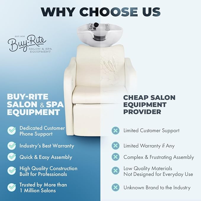 Buy-Rite Lexus Backwash Unit β Professional Salon Shampoo Chair with Extra Wide Seat, Kick-Out Leg Rest, Tilting Porcelain Shampoo Bowl, European Style Faucet & Neck Rest, TS-8018B (White Zebra)