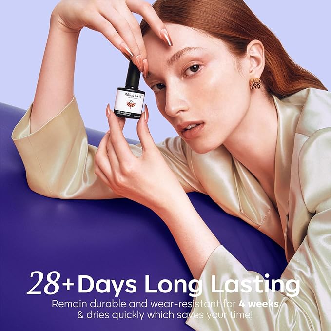 - Healthy & 28 Days No Peel-off: Modelones gel nail polish is made from natural resin, featuring a non-toxic, low-odor formula free from harsh ingredients and adhesives that can damage your nails. Its high durability and rich pigmentation deliver a stunning, glossy finish that lasts up to 28 days, all with a quick 3-minute application
