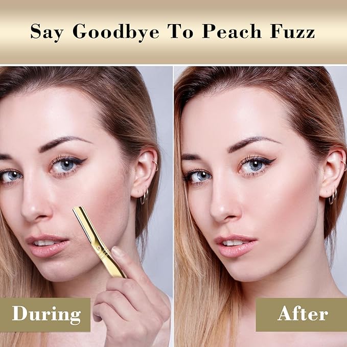 Dermaplane Razor for Women Face with 6 Refill Blades, Dermaplaning Tool Face Razors for Removes Facial Hair, Peach Fuzz, Reusable Metal Handle Eyebrow Razor (Royal Gold)
