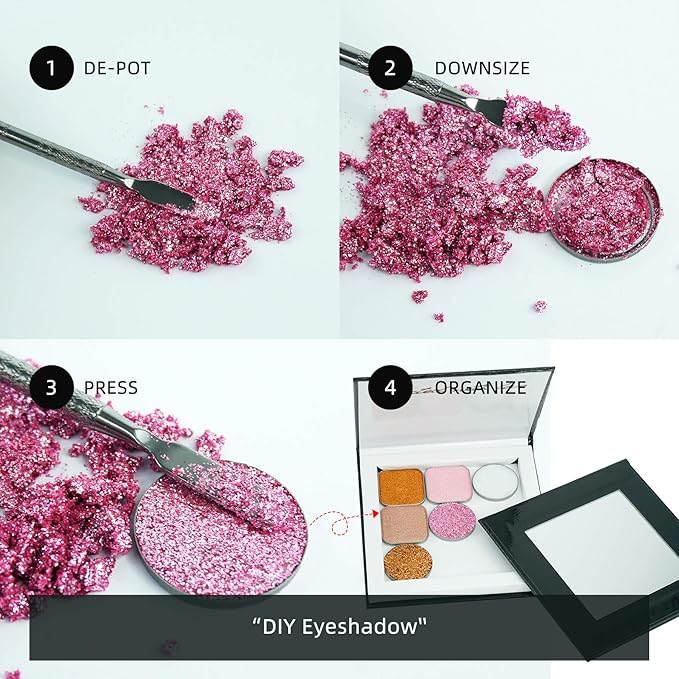 - 𝐈𝐦𝐩𝐨𝐫𝐭𝐚𝐧𝐭 :Makeup not included. Empty palette fits pans less than 0.24 inches deep and under 3.19 inches wide/long. Please check size before purchasing, Each Item Weighs 5 oz.