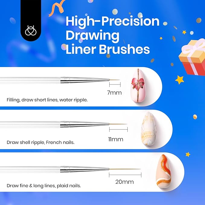 - High-Quality Brush: Our nail art brushes use soft and flexible fiber brush hairs that are tight and don't split, providing a smooth usage experience and precise control for depiction. Whether it's delicate lines or complex patterns, they can all be easily mastered, making your nail art works more refined and perfect.