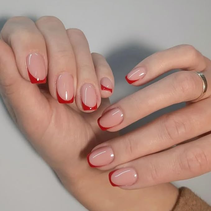 - Red French Press On Nails: Modelones press on nails short give you infinite opportunity to play around with different trendy nail styles for every mood, every outfit, and everyday