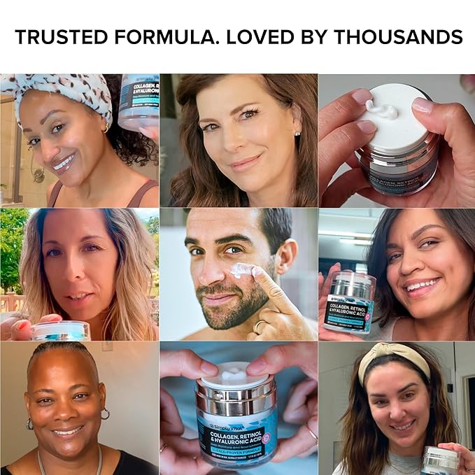 SimplyVital Anti-Aging Collagen Retinol Cream for Face, Neck & Décolleté with Hyaluronic Acid - Made in USA, Daily Collagen, Retinol & Hyaluronic Acid Cream, 2-Pack