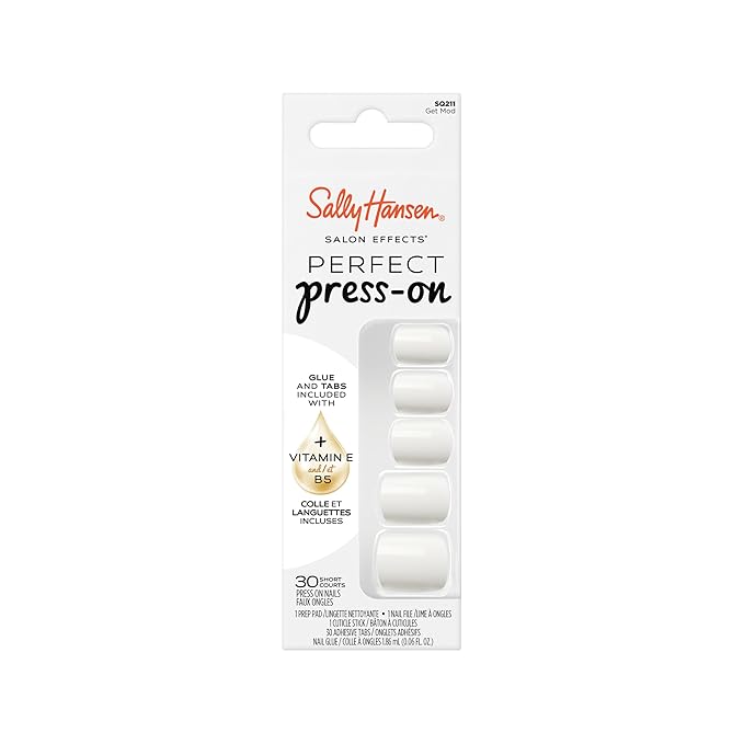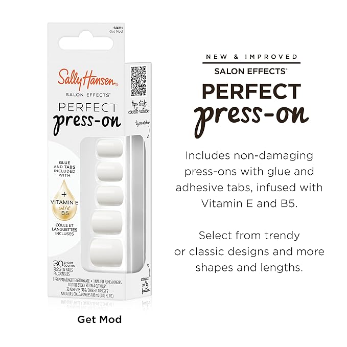 Sally Hansen Salon Effects Perfect Press-On Nails | Square Shape | Easy to Apply, Non-Damaging | 30 Nails, Nail Glue, Adhesive Tabs, File | Get Mod