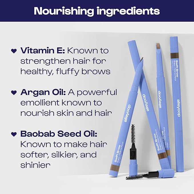 - NOURISHING CARE: Love your brows with this formula! Infused with Vitamin E, Argan Oil, and Baobab Seed Oil, it conditions and blends. Whether you use an eyebrow pen, eyebrow pencil, or brow liner, this eyebrow liner and eye brow pencil keep brows flawless!