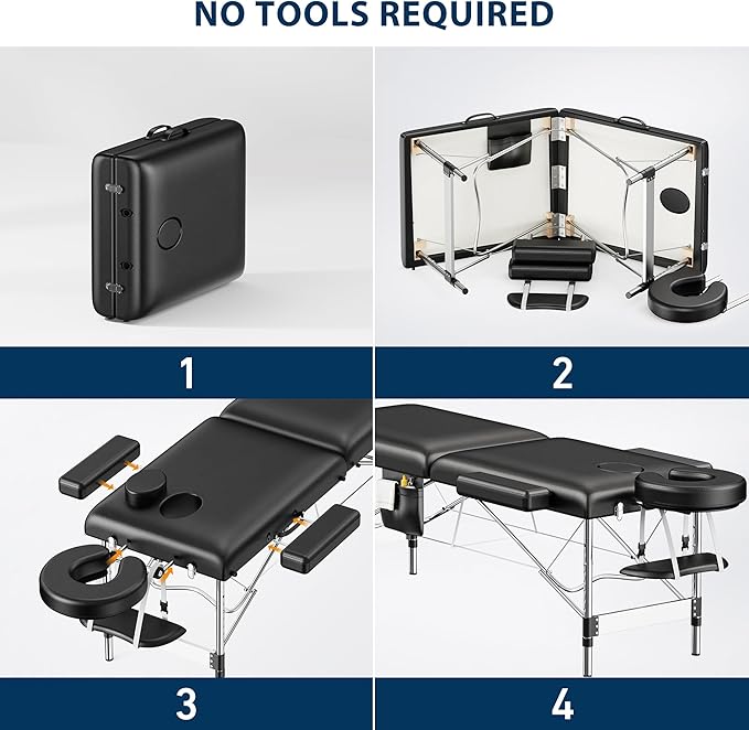 - PORTABLE AND DETACHABLE: This portable massage table is lightweight and easy to disassemble. Once folded, it transforms into a compact carrying case with secure clasps. It can be easily carried to anywhere a therapist is needed