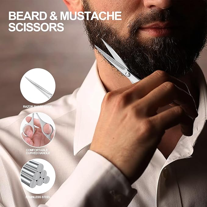 - [Sharp Detail Scissors] : With slender blades, it is easy to trim in narrow areas. The sharp blades can cut hair in an instant, making it very suitable for trimming eyebrows, eyelashes, beards, ear/nose hair, facial hair, and personal care. Be careful not to scratch your skin when using. Please keep it out of the reach of children to avoid sharp injuries.