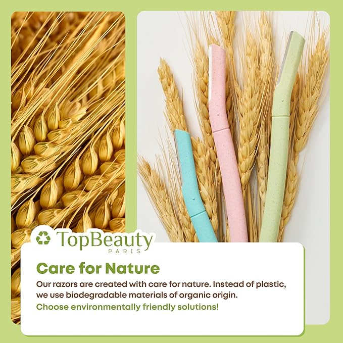 Paris Women Facial Eco Razors - 3 pcs per pack - Wheat Straw Eyebrow Razors - Multipurpose Facial Body Hair Peach Fuzz Removal Trimmer Shaver - Dermaplaning Tool - Protective Safety Cover
